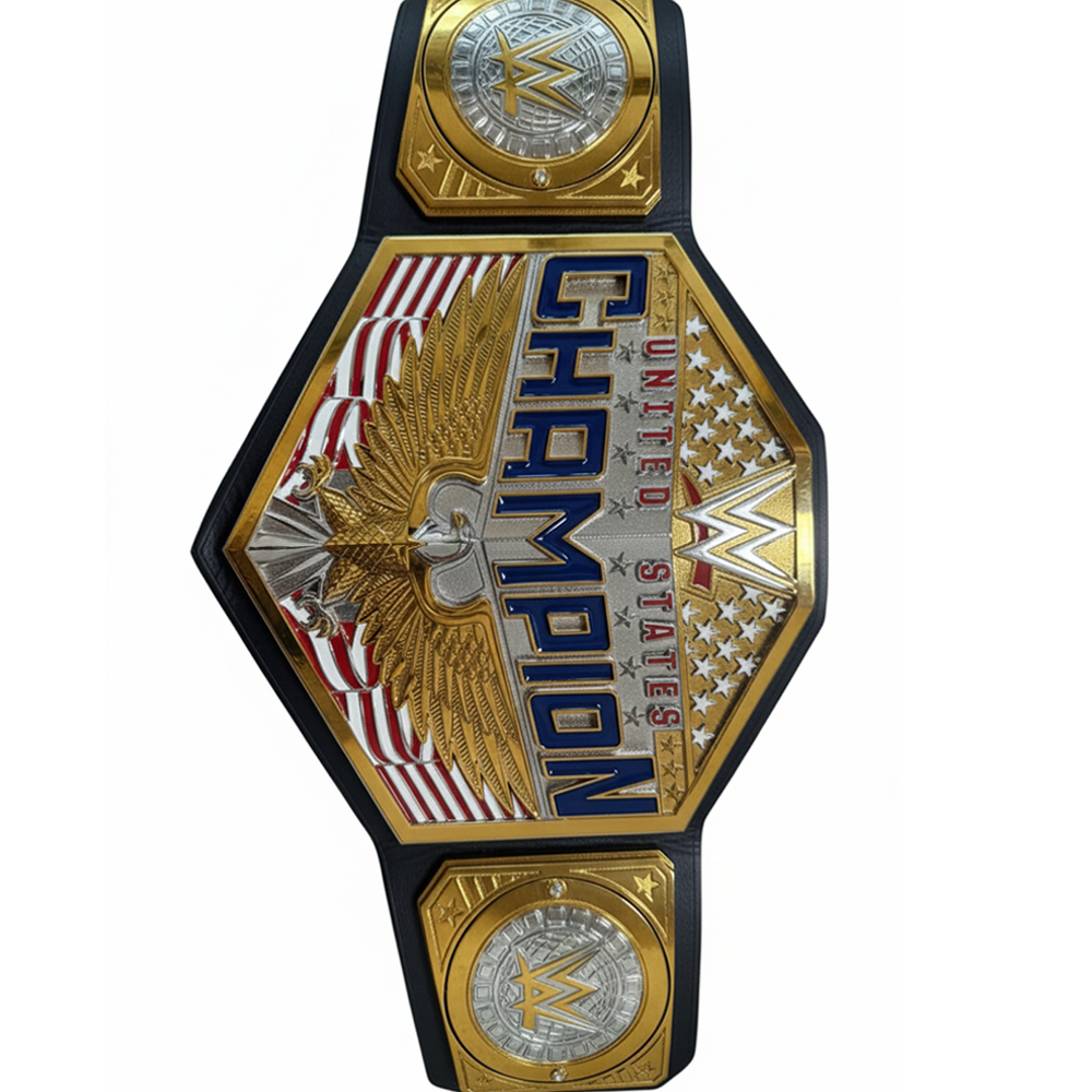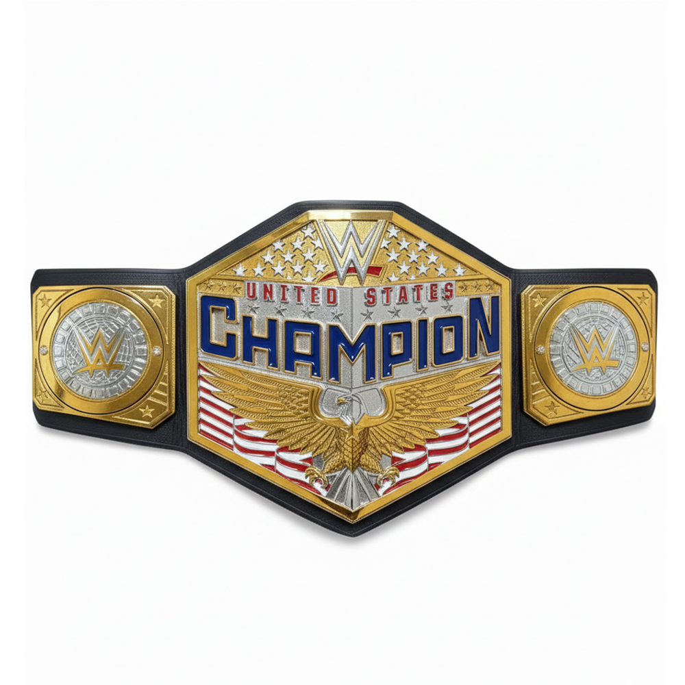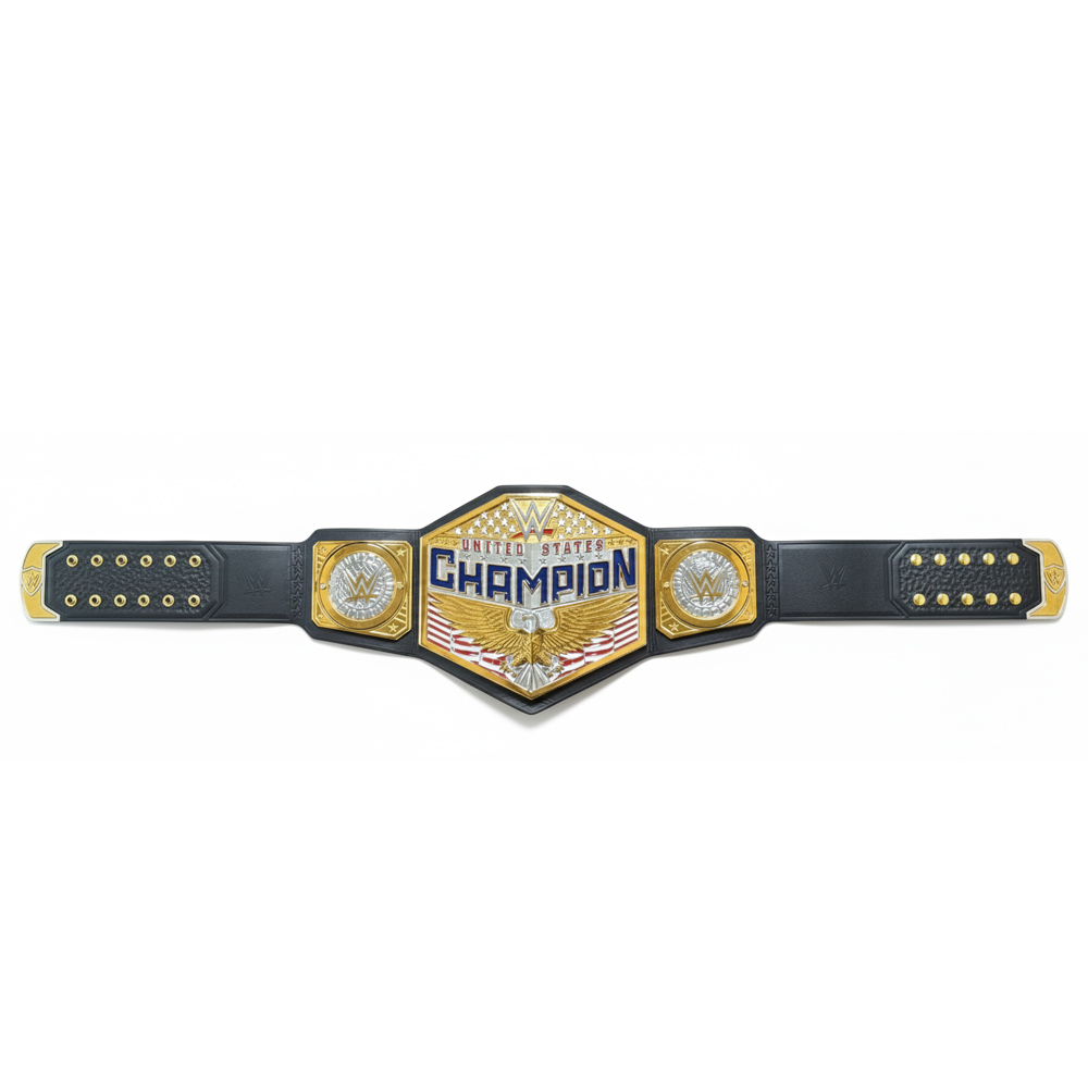 The WWE United States Championship is a secondary singles title, currently on SmackDown, known for its patriotic design with a prominent US Map Eagle Theme, faeturing a large main plate on a leather strap with stars or without stars plain strap. Originating in NWA/WCW, it’s a prestigious title historically defended by legends like Harley Race, John Cena, and Ric Flair, known for its iconic look and role as a stepping stone for top stars.