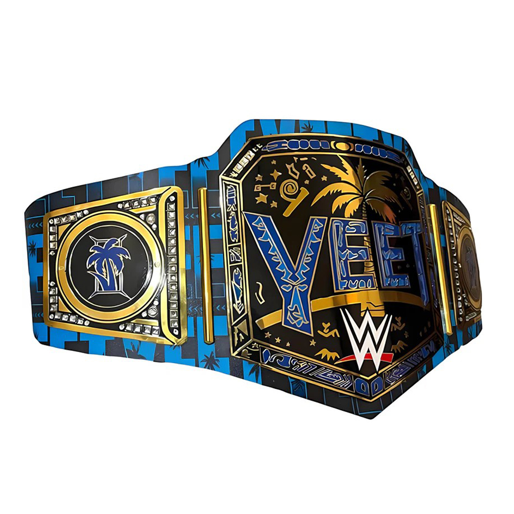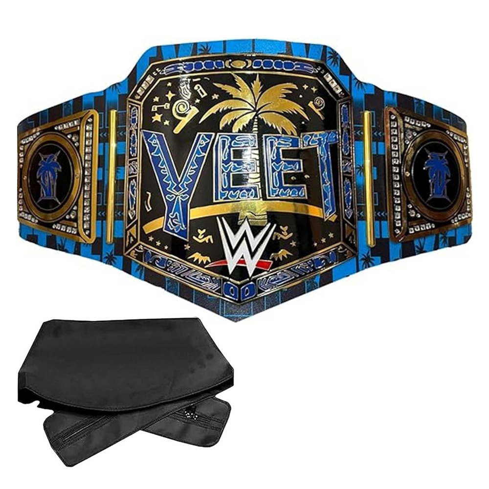 The “Yeet Championship Title Belt” refers to replica wrestling belts, often inspired by Jey Uso’s popularization of the term, featuring durable brass or zinc plates ( around 2mm thick ) with gold plating and a substantial 4mm leather strap, designed for adult fans to wear for cosplay, display, or events, available from online sellers like Etsy, eBay, and Amazon. They typically measure around 50-52 inches long, fitting waists up to 45-46 inches, and offer an authentic look and feel for wrestling enthusiasts.