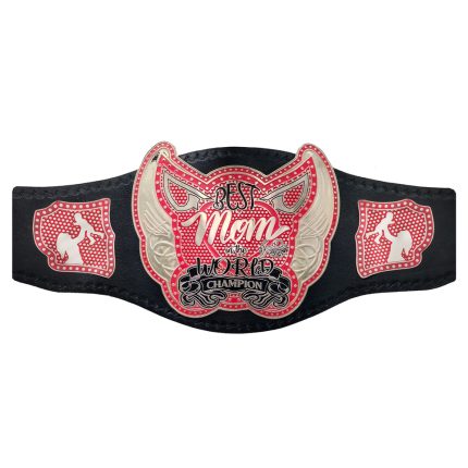 World Greatest Mom Wrestling Championship Belt Gold Coated Zinc Metal Real Leather Strap